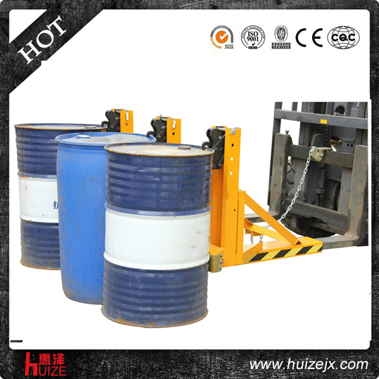重型三油桶夾單鷹嘴DG1500C純機(jī)械機(jī)構(gòu)設(shè)計可與叉車方便地配合,僅依靠叉車的動作,不需要其它的動力,可自動一次搬運(yùn)3個桶, 能處理更多類型的桶,包括鋼制油桶和塑料油桶, 配置可拆換式柔性耐磨保護(hù)墊,有效保護(hù)油桶并緩沖叉車行駛過程中的震動, 能在集裝箱等這樣狹小的環(huán)境內(nèi)裝卸桶裝物質(zhì),可極大地提高空間利用率, 與貨叉連接配有自鎖裝置確保油桶夾在坡度上和顛簸路面使用時不會滑落.